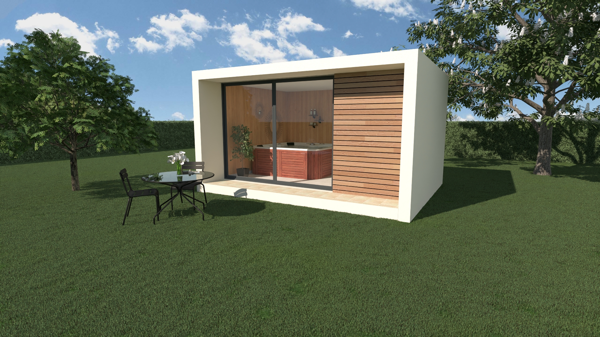 Le Moduly’SPA saura vous relaxez par son architecture minimaliste. Il se distingue par son toit plat très légèrement incliné. Le mur en pierre de l’entrée apporte un aspect chaleureux et architectural à la construction tandis qu’un enduit matricé ou un bardage confère un rendu moderne à l’ensemble.